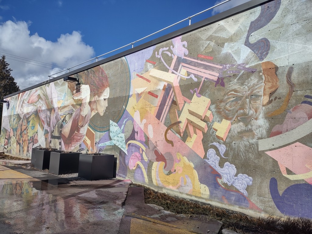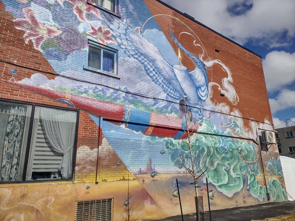 P.S. Un peu hors sujet, mais il y a deux magnifiques murales à ne pas manquer dans le coin, dont une sur un mur de la bibliothèque!