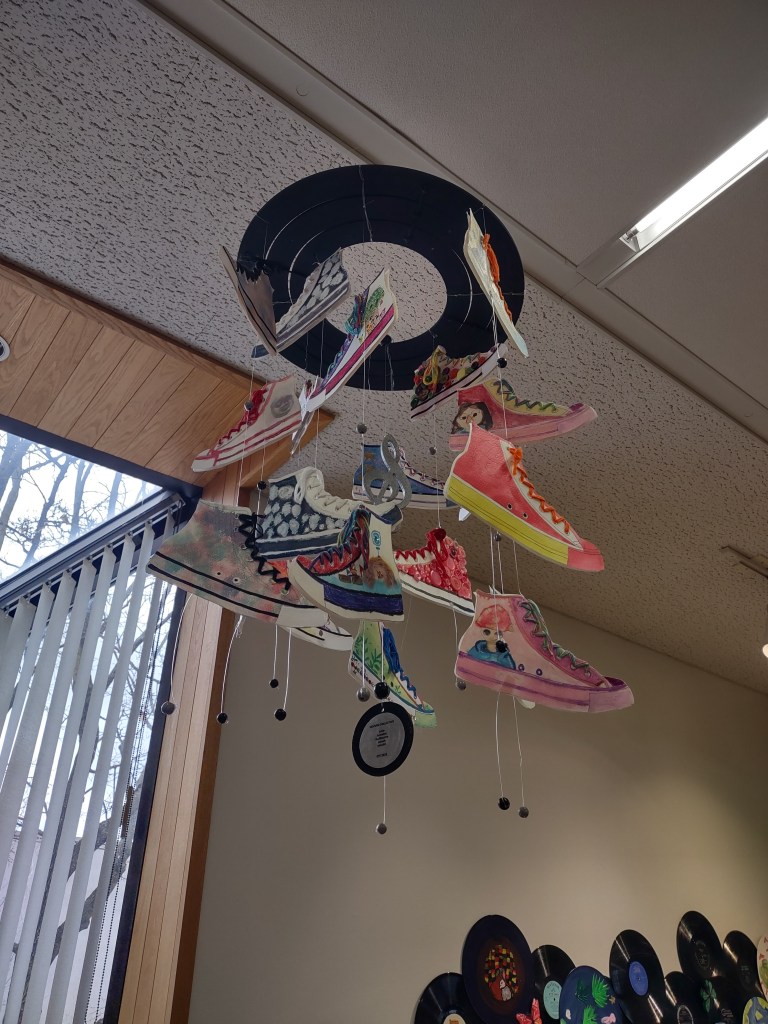 En plus de cette exposition éphémère, j’ai apprécié les nombreuses œuvres affichées un peu partout dans la bibliothèque.