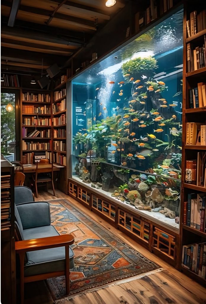 En ce 1er avril, j’ai fait la visite d’une bibliothèque qui rend hommage aux poissons 🐟. Un lieu unique qui saura enchanter tous vos sens et satisfaire votre curiosité envers le monde sous-marin et ses mystères. Les personnes nées sous le signe du poisson y seront particulièrement choyées.