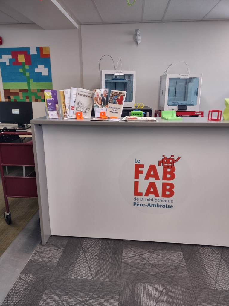 Le FabLab est également bien à l’honneur dès l’entrée avec une petite exposition de créations qu’on devine issues des activités qui y sont proposées comme l’impression 3D, la modélisation et la robotique.