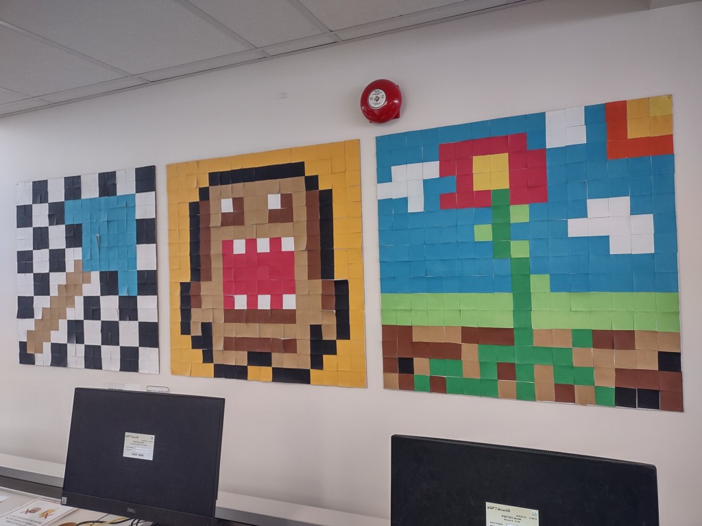 - Et du Pixel art! Très simple et très mignon. J’en avais d’ailleurs vu précédemment à la Bibliothèque Langelier.