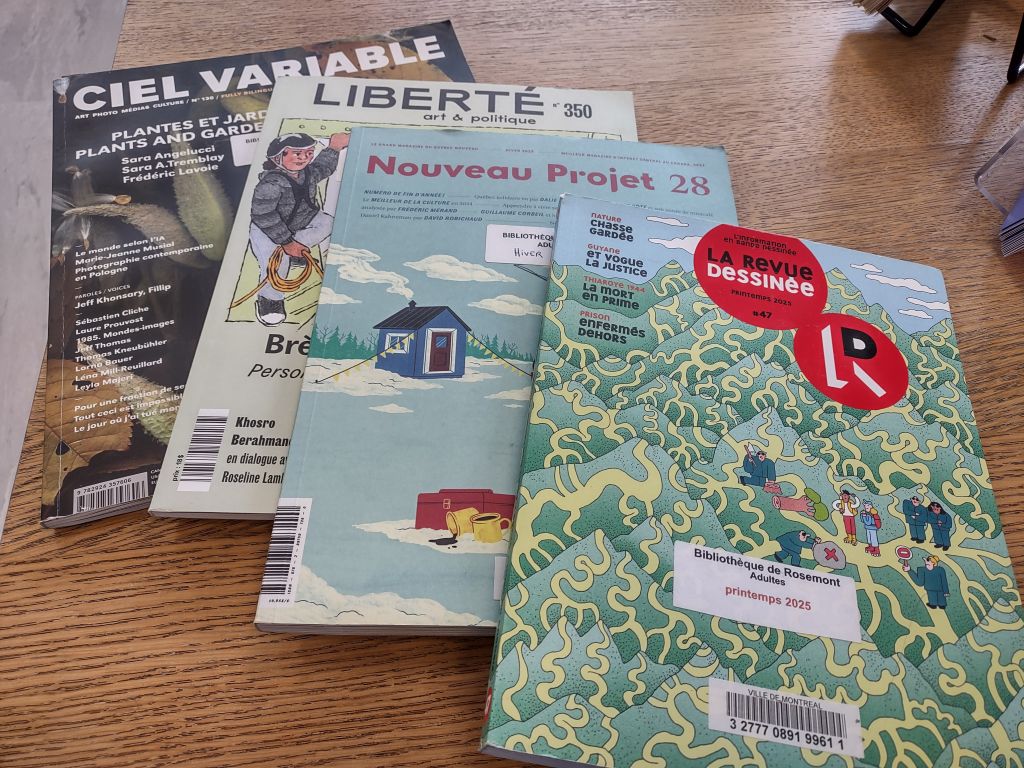 Elle a en effet tout ce qu’il faut pour faire le bonheur des gens du quartier. Et je le sais de source sûre (coucou Alice 😉)! Ma source a d’ailleurs porté à mon attention un petit détail intéressant : la Bibliothèque de Rosemont fait partie des rares à permettre l’emprunt des éditions les plus récentes des magazines. J’en ai profité pour explorer ce médium que je feuillette rarement et j’ai fait de bien belles découvertes.